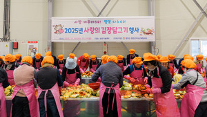 합천군 여성단체협의회(회장 이정임)는 19일부터 21일까지 3일간 용주면 소재 농업기술센터에서「사랑 버무리GO! 행복 나누GO!, 2025년 사랑의 김장담그기」 행사를 개최했다.여성단체협의회 회원 200여명은 19일 배추뽑고 절이기를 시작으로 21일 최종 김장버무리기까지 3일 동안 내 가족을 위하는 마음으로 최선을 다했으며, 김윤철 합천군수를 비롯한 정봉훈 군의회 의장 및 의원들이 방문해 김장담그기에 동참하는 등 함께한 봉사자들을 격려하였다.김장행사에는 해마다 농업기술센터 직원들이 정성껏 키운 배추와 장소를 제공하고, 바르게살기운동