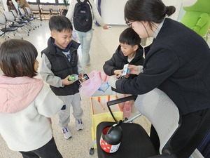 산청군 신안면은 지난 18일 신안면사무소에서 ‘어린이 환경지킴이 캠페인’을 개최했다고 19일 밝혔다.인구정책사업 일환으로 실시한 이번 행사에는 산청유치원 원아 40명과 교사 5명이 참여했다.이들은 가정에서 가져온 폐건전지와 우유팩을 새 건전지와 화장지로 교환하며 자원순환의 중요성을 배웠다.특히 산청 관광캐릭터 산이와 얼쑤가 어린이들을 반갑게 맞이하며 자원순환 교육 영상을 시청하고 아이들이 직접 가져온 폐건전지와 우유팩을 분리배출함에 넣는 체험활동을 진행했다.아울러 재활용품을 올바르게 배출한 어린이들에게 새 건전지와 캐릭터 인형을 선