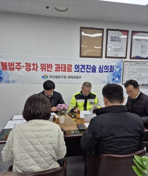 창원특례시 마산합포구(구청장 서호관)는 25일 ‘불법 주정차 위반 과태료 부과 의견진술 심의위원회’를 개최했다고 밝혔다.매월 1회 정기적으로 개최되는 마산합포구 주정차위반 과태료 부과 의견진술 심의위원회는 교통 관련 단체 임직원, 경찰 관계자 등 총 5명으로 구성되어 있으며, 주정차위반 과태료 부과 전 의견제출 기간 내에 제출된 의견진술서에 대하여 부득이한 사유에 해당하는지 여부를 심의한 뒤 과태료 부과 또는 면제를 결정하고 있다.이번 심의위원회에서는 주정차위반으로 의견 진술된 30건에 대하여 차량 고장, 사고, 응급환자 수송 등