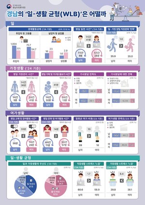최근 우리 사회는 여성의 경제활동 참여 비율 확대, 가정생활과 여가생활의 중요성 인식 등에 따라 일 중심의 사회에서 일-생활 균형을 중시하는 사회로의 변화를 겪고 있다.실제 10년 전과 비교했을 때 부산·울산·경남 남성의 가정관리 시간이 늘어났으며, 가사를 남·녀가 공평하게 부담해야 한다고 생각하는 비율도 늘어났다. 동시에 여전히 ‘여성은 가사·돌봄에 전념하는 것이 좋다’고 생각하는 사람의 비율이 수도권보다 많은 것으로 나타났다.하지만 남·녀 모두 일과 생활 중 일을 우선하는 사람이 줄고 일과 과정을 비슷하게 중요하다고 생각하는 사