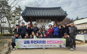 밀양시 교동(동장 정경자)은 교동 주민자치회(회장 박명이) 주관으로 위원들의 역량 강화와 우수사례 발굴을 위해 경상북도 안동시와 예천군 일원에서 선진지 견학을 실시했다고 24일 밝혔다.이번 견학에는 주민자치회 위원 20명과 공무원 4명 등 총 24명이 참여했으며 전통 문화유산을 연계한 관광객 유치 사례와 지역자원 활용 방안을 배우며, 교동 발전에 적용할 수 있는 방향을 모색하는 뜻깊은 시간을 가졌다.이날 위원들은 먼저 안동하회마을을 방문해 전통 문화유산 보존과 지역 문화자원을 활용한 관광 활성화 사례 와 예천군의 회룡포와 장안사를