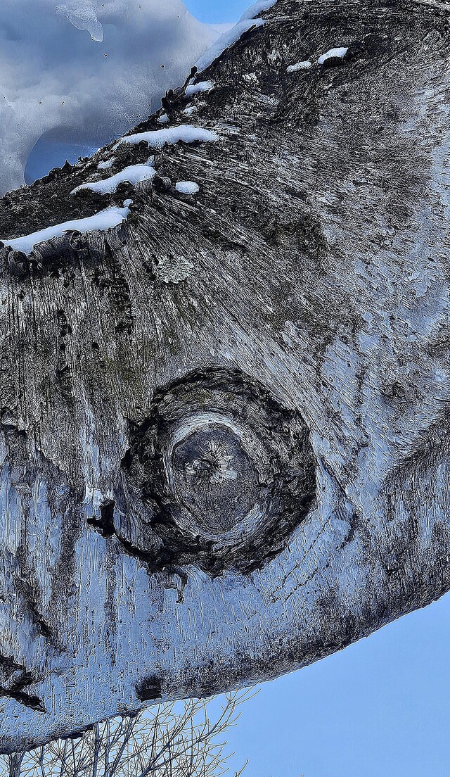 자작나무 위에 쌓인 눈이 녹으면서 눈동자가 없는 눈 같은 것이 저쪽 편에 생겼다. 반대편에 외눈박이 눈동자 하나가 보인다. 왠지 무섭다. 두 눈을 부릅뜨고 험한 세상을 살아가도 쉽지 않을 텐데, 아무리 잘 본다고 해도 두 눈이 합심하여 보는 세상만 할까. 한 눈을 감고 한 눈으로만 보는 세상은 정확하게 파악되지 않고 약간은 왜곡되어 보이기 쉽다. 균형 있게 이 쪽 저 쪽 잘 살피기도 어렵다. 이 편도 잘 보고 저 편도 잘 봐서 공평하게, 행여라도 한 쪽으로 치우치지 말라고 조물주는 우리에게 두 눈을 만들어 주었을 것이다. 그러니 한 편으로 치우지면서 본 세상이 전부라고 우기지 말고 다른 편과도 협의하여 똑바르게 잘 살피도록 해야 한다. 내 편만 옳고, 니 편은 그르다고 서로를 밀어내기만 한다면 영원히 올바른 세상을 볼 수는 없다.