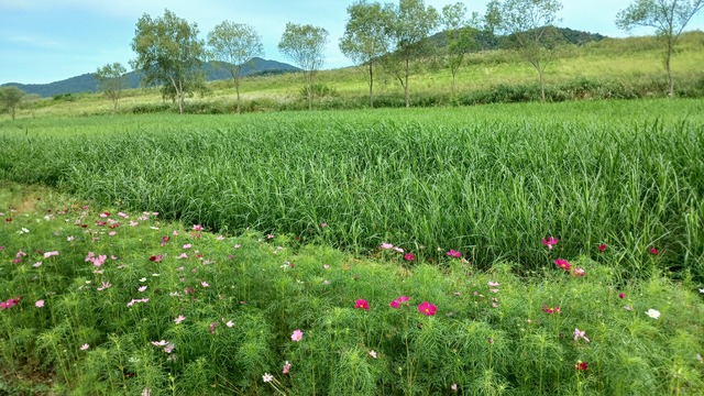 올여름은 유난히 무더웠는지라 산책로 길섶 코스모스는 물 부족으로 생육이 부진한 속에 잡초에 눌려 자랐다. 당국에서는 노인 일자리 창출을 겸한 할머니들에게 더위가 심한 한낮에 일을 시킬 수 없어 뒤늦게 김을 매도록 해 꽃길 잡초 제거는 이제 막바지에 이르렀다. 차양을 가린 머릿수건을 두른 여남은 명 넘을 부녀들이 호미를 들고 야윈 코스모스만 남긴 김을 매느라 수고했다.