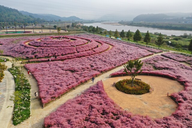합천읍 황강변 신소양체육공원에서는 핑크빛 가을이 한창이다.