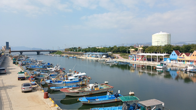 홍티교를 거쳐 장림에 이르러 도심 재생 프로젝트로 포구를 새롭게 단장한 장림항으로 가봤다. 포구에는 조업을 나서지 않은 작은 어선들이 여러 척 묶여 있었다. 전망대와 카페도 멋지게 꾸며져 있고 건너편으로 무지개다리가 걸쳐졌다. 야외 쉼터에서 커피잔을 놓고 포구를 완상했는데 비 오는 날이면 운치를 더할 듯했다. 야경이 아름다울 장림 부네치아에서 을숙도로 향했다.