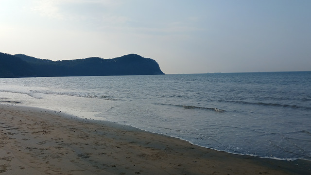 넓은 백사장에서 사람 발자국이 남지 않은 모래를 디디니 숫눈을 밟는 기분이 들었다. 낮은 파도가 밀려와 부서지는 모래톱으로 가자 산책객들은 찰랑이는 물결에 맨발로 걷는 이들이 더러 보였다. 도심 공원 조성된 황톳길에서 맨발 걷기를 하듯 백사장 모래톱에서도 맨발로 걷기를 하는 이들은 건강을 고려한 일상인 듯했다. 발바닥에 닿는 촉감이 부드럽고 간지럼을 타지 싶다.
