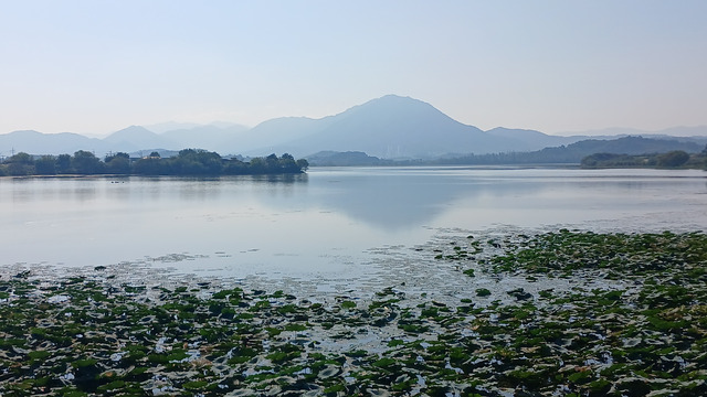 교각 아래 정류소에서 본포로 가는 30번 버스를 탔다. 용잠삼거리에서 화목과 석산을 거친 용산마을에서 내렸다. 산남저수지와 수문이 연결된 둑에서 용산 뒷동산 단감농원 데크를 따라 주남저수지 둑길을 걸었다. 저수지 수면 넓게 퍼져 자라 고운 꽃을 피웠던 연은 잎이 시들어 가는 즈음이다. 들녘으로 물길을 내보내는 배수문을 지난 둑은 코스모스 꽃길이 아득하게 펼쳐졌다.