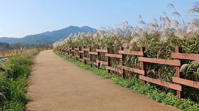 점심 식후 회원들과 인근 주남저수지 둑길을 걷는 산책을 나섰다. 식당에서부터 걷기도 하고 차량을 탐조대 부근으로 이동시켜 둑으로 오르는 이들도 있었다. 삼삼오오 가벼운 발걸음으로 걷는 둑길은 아까 행사 전 나 혼자 물억새 열병을 받고 지났던 길을 한 번 더 걸었다. 배수문을 거쳐 낙조대 쉼터로 모여들 때 슬그머니 주남마을로 향해 벼들이 익어 고개 숙인 들판을 지났다.