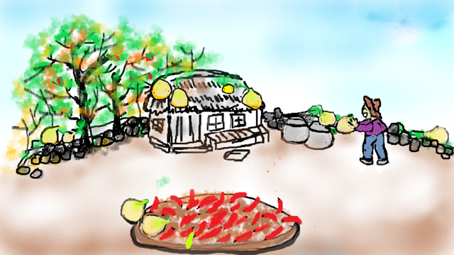 예부터 박이란 놈은 기와지붕 위에서는 절대 자라지 않고, 초가지붕에서만 골라 자라는 가난한 백성들의 작물이었다. 흥보가를 다른 이름으로 ‘박타령’이라 하는 이유도 여기에 있다. 그렇게 온 지붕을 칭칭 감듯이 자라, 큰 이파리로 뜨거운 햇볕이나 장맛비를 막아주고, 튼실한 박통은 태풍이 불어올 때 지붕을 지켜주는 든든한 방패막이였다.