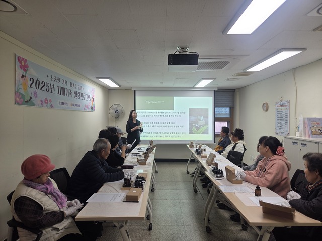 프로그램은 ▲ 아로마 테라피의 이해와 효능 ▲ 나만의 향기 블렌딩 체험 ▲ 향기 명상과 심신 이완 체험 ▲ 가족 간 돌봄 경험 공유 등으로 진행되었으며 치매환자 가족들의 스트레스 해소와 정서적 안정을 도모하는 시간을 가졌다.