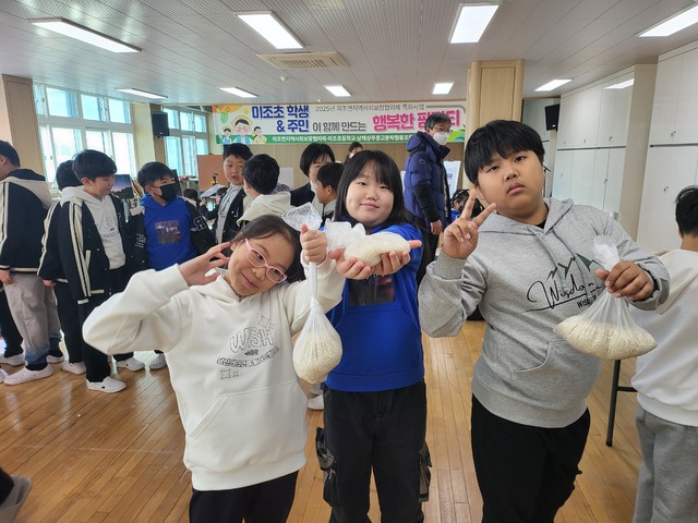 미조초 학생들과 지역사회보장협의체는 올해 초부터 벼 모판 만들기를 시작으로 손모내기, 벼베기 등 직접 벼농사를 체험하는 활동을 이어왔다. 그 과정에서 아이들은 농작물이 자라는 전 과정을 경험하며 성취감과 협력의 가치를 배웠다.