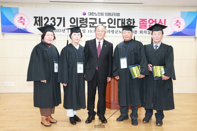 제23기 의령군노인대학은 지난 4월11일 개학하여 총 24주, 48시간으로 건강 의료상식, 인문학 교양교육, 취미교실, 안전 교육 등 다양한 강좌로 진행됐으며 남자 19명, 여자 46명 등 총 65명이 졸업장을 받았다.