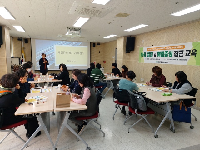 고성군(군수 이상근)이 운영하는 고성군종합사회복지관은 11월 20일 본관 3층 소회의실에서 지역 내 공공·민간 사례관리 업무 담당자 25명을 대상으로‘마음힐링과 해결중심접근’을 주제로 사례관리 역량강화 교육을 실시했다.