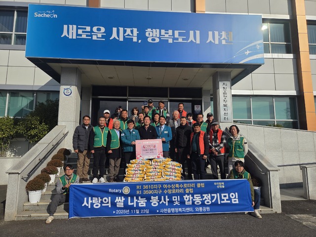 사천시는 지난 23일 국제로타리 3590지구 수양로타리클럽(회장 김문열)이 지역 주민과 함께하는 걷기대회를 개최하고 사천읍의 어려운 이웃들을 돕기 위한 백미 30포(환가액 130만 원)을 기탁했다고 24일 밝혔다.