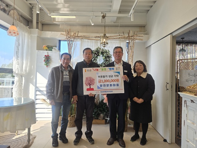 남해군 창선면 광천문화마을(대표 박형수)에서 연말을 맞이해 지역사회 나눔문화 확산과 어려운 이웃 지원을 위해 이웃돕기 성금 100만원을 기탁했다.