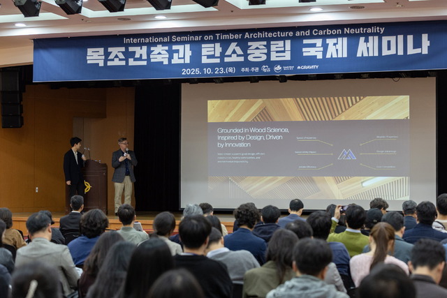 지난 10월 23일 진주시에서 열린 ‘목조건축과 탄소중립 국제세미나’에서 주제 발표자로 나선 ‘닉 마일스톤(Nick Milestone)’ 캐나다 ‘머서 매스 팀버’사의 최고운영책임자는 “한국의 현시점은 영국의 20년 전과 매우 흡사하며, 20년 전 영국은 콘크리트 빌딩과 철골 빌딩만 있었지만 친환경 정책을 강력하게 추진했다”며 “한국은 지금이 적기이며, 이미 충분한 나무와 사람, 기술을 가지고 있다”고 말했다.