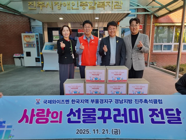 진주시복지재단(이사장 이성갑)에서 운영하는 진주시장애인종합복지관(관장 박철수)에서는 지난 21일 라임기획(대표 김정현)으로부터 ‘국제와이즈멘 한국지역 부울경 지구 경남지방 진주촉석클럽 2025 사랑의 선물꾸러미 따뜻한 동행사업’의 일환으로 식재료 꾸러미를 후원받았다고 밝혔다.