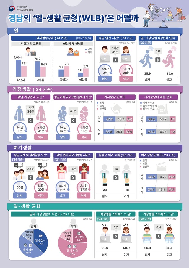 국가데이터처 동남지방통계청은 25일 이같은 내용을 담은 ‘부산·울산·경남 동남권 일-생활 균형’ 조사 결과를 발표했다.