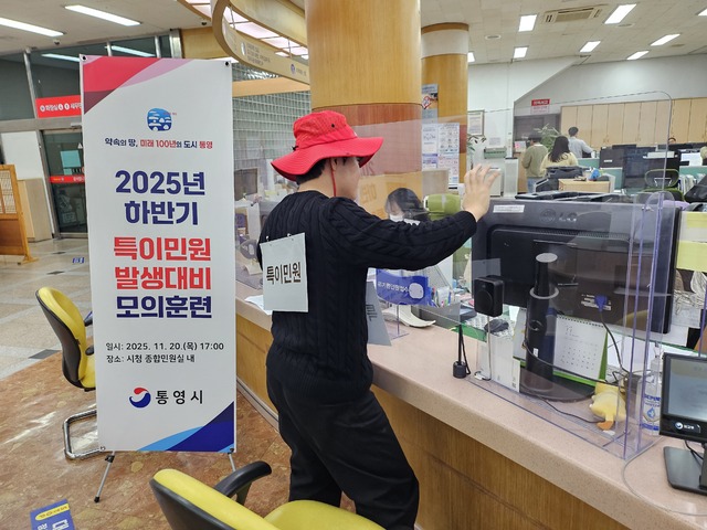 통영시(시장 천영기)는 지난 20일 통영시청 종합민원실에서 민원지적과 직원들과 경찰합동으로 하반기 특이민원 발생 대비 모의훈련과 함께 출입제한?퇴거 조치 관련 교육을 가졌다.