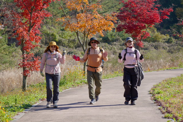 ‘화전별곡길’은 내산저수지 일대의 가을 단풍 향연이 펼쳐지는 숨은 단풍 명소이다. 깊은 숲길과 능선길이 이어지는 구간으로, 계절 변화가 선명하게 느껴지는 자연 풍광이 특징이다. 참가자들은 서늘한 바람 속에서 남해 산세와 숲길의 정취를 만끽하며 코스 전 구간을 함께 걸어 나갔다.