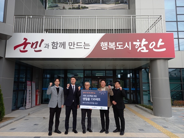 함안군 칠원읍은 골프존 카운티 경남(이사장 김영찬)이 25일 지역의 어려운 이웃을 돕기 위해 칠원읍사무소에 생필품 150상자(약 1000만원 상당)를 기탁했다고 밝혔다.