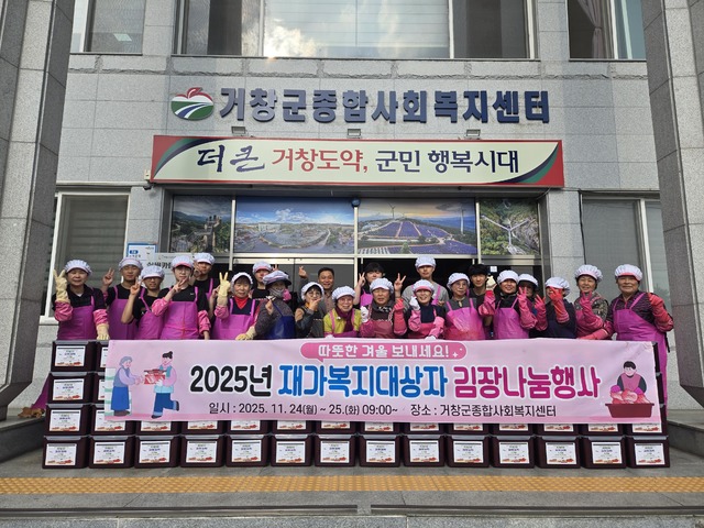 거창군은 지난 24~25일 이틀간 거창군 종합사회복지센터에서 재가복지대상자 247세대에 김장김치 1,600kg을 담가 전달하는 ‘사랑의 김장 나눔 행사’를 진행했다고 밝혔다.