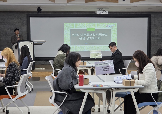 이번 보고회는 각 정책학교가 운영 사례를 공유하고 다문화교육 역량을 높이기 위해 마련됐다. 유치원은 놀이 활동을 통해 여러 문화를 자연스럽게 경험하도록 한 프로그램과 다문화 유아의 언어 발달을 돕기 위한 지원 방안을 소개했다. 초등학교는 교과 수업과 창의적 체험활동과 연계한 다문화 감수성 프로그램 운영 사례를 발표했다.