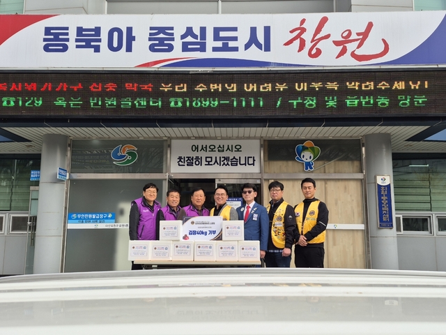 창원특례시 마산회원구 회원1동 행정복지센터(회원1동장 김형남)는 25일 창원아리랑 라이온스클럽(회장 김해용)이 연말을 맞이하여, 회원1동 행정복지센터를 방문해 관내 저소득층을 위해 김치 40kg을 기탁 했다고 전했다. 기탁품은 회원1동 내 저소득층 8세대에 전달될 예정이다.